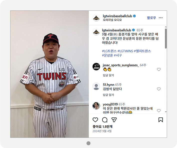 이토록 성공적인 협업은 ‘빠더너스’가 LG에 진심이었기에 가능했다. 문상훈은 LG 팬으로 잘 알려져 있다. LG 경기의 시구를 했던 경험도 있다. LG 팬의 가슴을 뛰게 하는 영상과 상품이 나올 수 있던 배경이다.