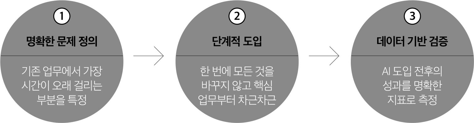 프로스포츠 업계의 AI 도입 사례들이 보여주는 핵심은 ‘AI 자체가 목적이 아니라 업무 혁신의 수단’이라는 점이다. 세비야 FC의 스카우팅 혁신, 토론토 랩터스의 선수 분석 시스템, 라리가의 실시간 경기 데이터 활용 모두 아래와 같은 공통점이 있다.