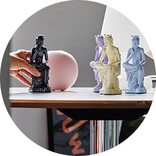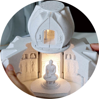 개인과 기업을 상대로 한 ‘뮷즈 정기 공모’도 통통 튀는 아이디어의 산실이다. 올해 열린 뮷즈 아이디어 공모 수는 역대 최고를 기록했다. 국립박물관문화재단은 “2025 뮷즈 정기 공모에 지난해보다 두 배 많은 3,000종이 접수돼 90종을 당선작으로 발표했다”고 밝혔다. 지난해 출시된 ‘취객 선비 3인방 변색 잔 세트’도 공모를 통해 탄생한 작품이다. 석굴암을 3D 프린트해 만든 ‘석굴암 조명’도 지난해 공모 당선작이다. 김은숙 차장은 “몇 년 전까지만 해도 출시까지 이어지는 상품이 거의 없었지만, 요즘엔 작정하고 준비하는 1인 기업이 많아졌다”고 했다.