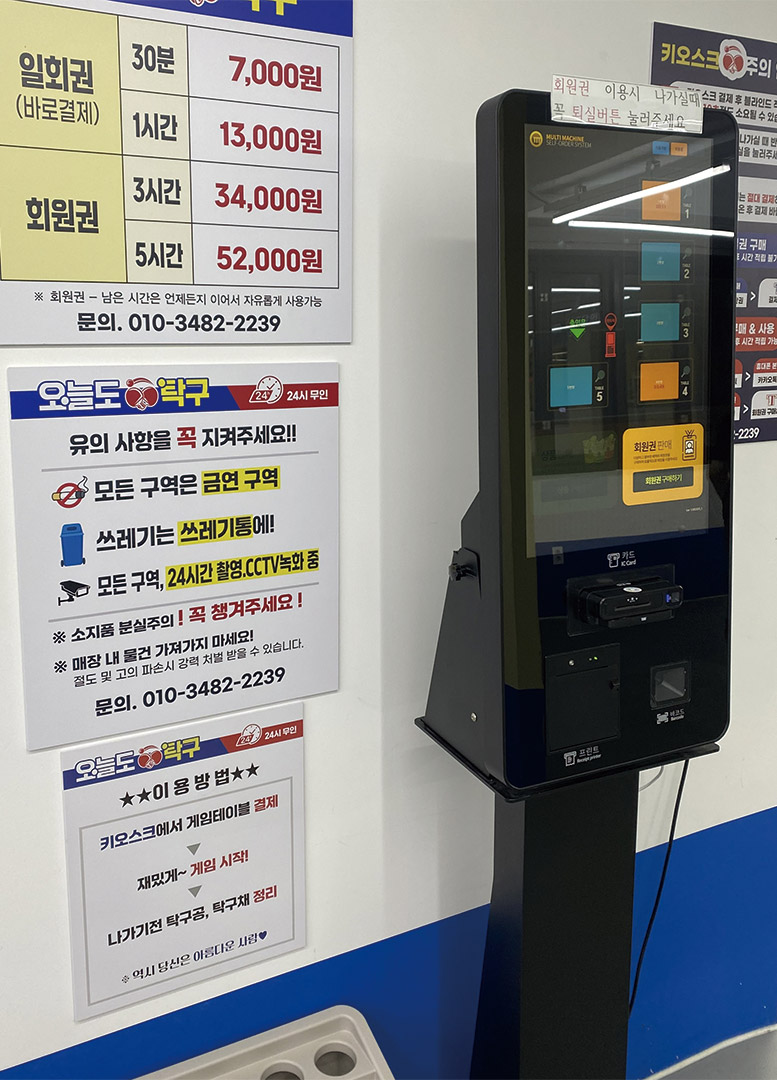 시내에 위치한 무인 탁구장 이용 방법과 키오스크 ⓒ 이승연