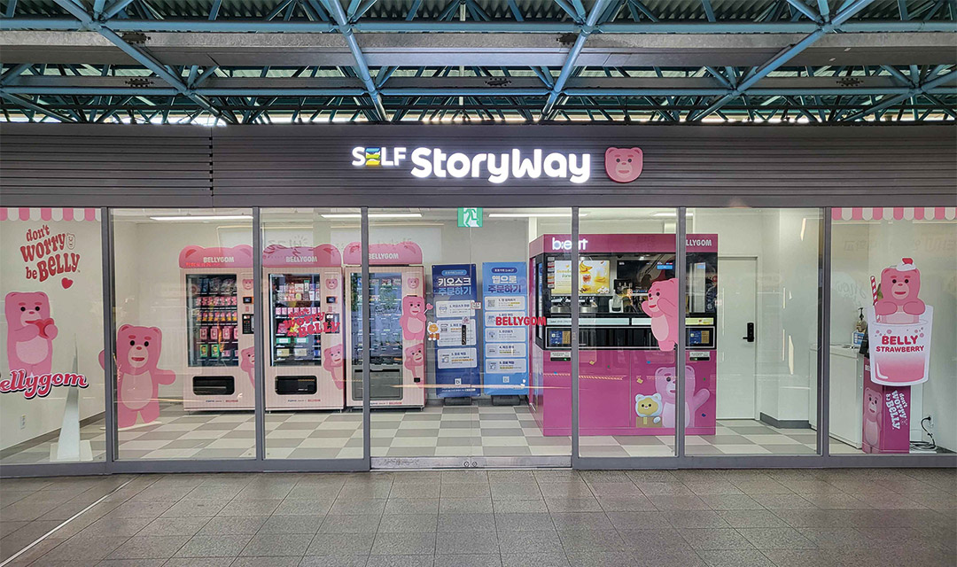 그런가 하면 인기 캐릭터와 컬래버한 팝업스토어 형태의 무인매장이 등장하기도 했다. 2024년 2월 코레일유통은 신도림역 상행을 타는 곳에 인기 캐릭터 벨리곰을 테마로 한 무인점포 ‘셀프스토리웨이’를 오픈했다. 셀프스토리웨이 매장 내부는 벨리곰 캐릭터로 디자인하고, 과자와 벨리곰 굿즈를 판매하는 자판기, 로봇카페 등을 설치해 신도림역 벨리곰 테마공간에서만 만나볼 수 있는 한정판 제품을 판매하기도 했다. 열차를 기다리는 잠깐 사이, 인기 캐릭터를 활용한 무인매장이 이용객에게 색다른 재미를 선사한 것이다.