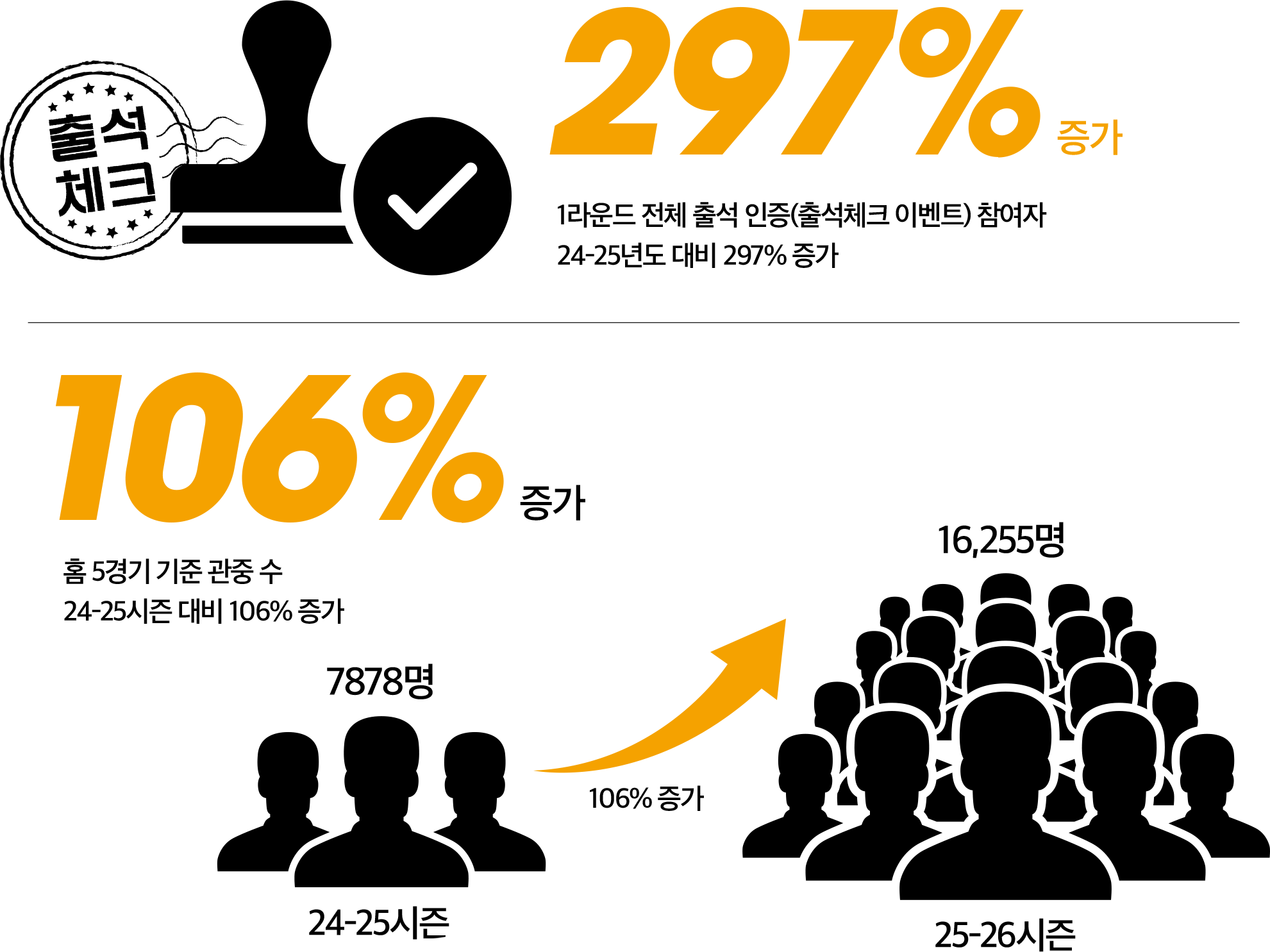 구단 관계자는 “연고 이전 이후 관중 수와 굿즈 판매액 모두 두 배 이상 늘었다”고 설명한다. 실제 데이터도 이러한 변화를 뒷받침한다. 1라운드 출석 인증 참여자는 전 시즌 대비 297% 증가했고, 홈 5경기 기준 관중 수는 106% 증가, 관람 수입은 220% 증가했다. 숫자가 말해주는 변화는 분명하다. 부산이라는 새로운 연고지에서 마련한 다양한 접점과 경험들이 재방문으로 이어지며, ‘부산의 배구팀’으로서의 존재감은 빠르게 자리 잡고 있다.